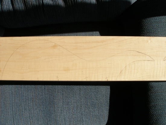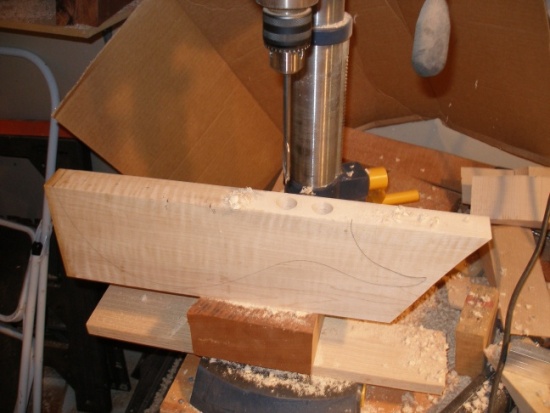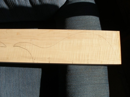 Here is my 2nd attempt at building a chambered guitar. Here is one if the wings laid out on a piece of tiger maple.