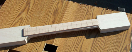 Next, I slotted the fretboard. The fretboard is a $3 piece of