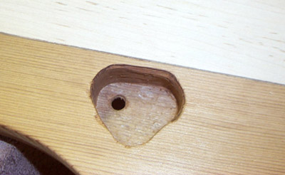 Here is the output jack hole. I just used a 1" bit, and a hand drill.