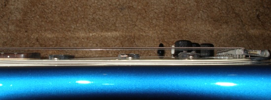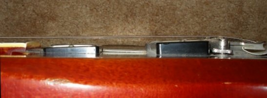 Here is a side view of an SG with a Tune-O-Matic bridge, notice that the bridge is taller than the Stratbridge, and that the strings are closer to the body near the neck joint.